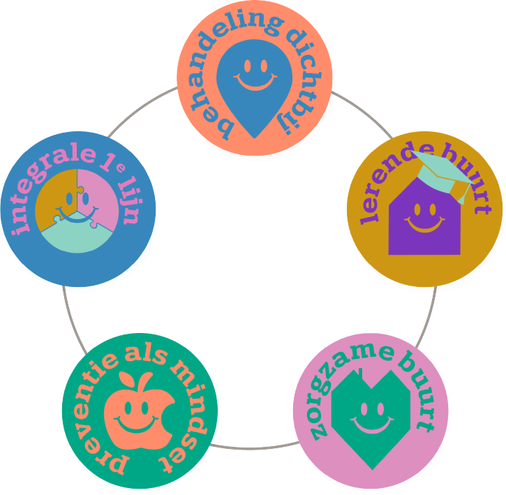 Een cliché dat we met liefde nieuw leven inblazen. Niet met geheven vingertjes, maar met praktische ondersteuning. We verschuiven de focus van ‘gezond worden’ naar ‘gezond blijven’. Van ‘zorgen voor’ naar ‘zorgen dat’. Van reactief naar proactief. Met concrete tools en kennis, samen met informele netwerken, die bewoners helpen hun gezondheid in eigen hand te nemen. Met zorgprofessionals en sociaal werkers als betrokken partners, maar zelf ferm in de regisseursstoel.